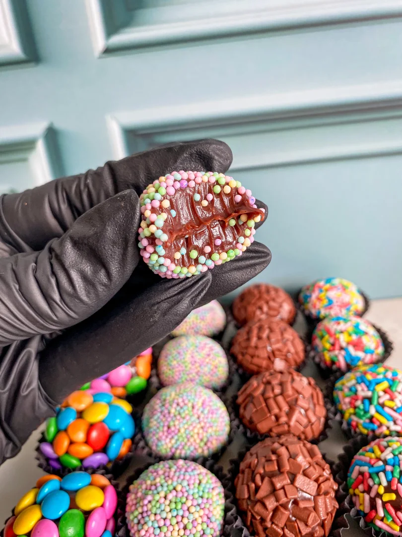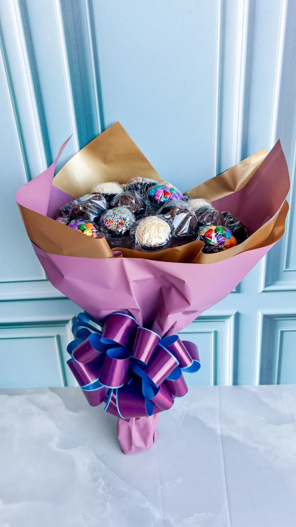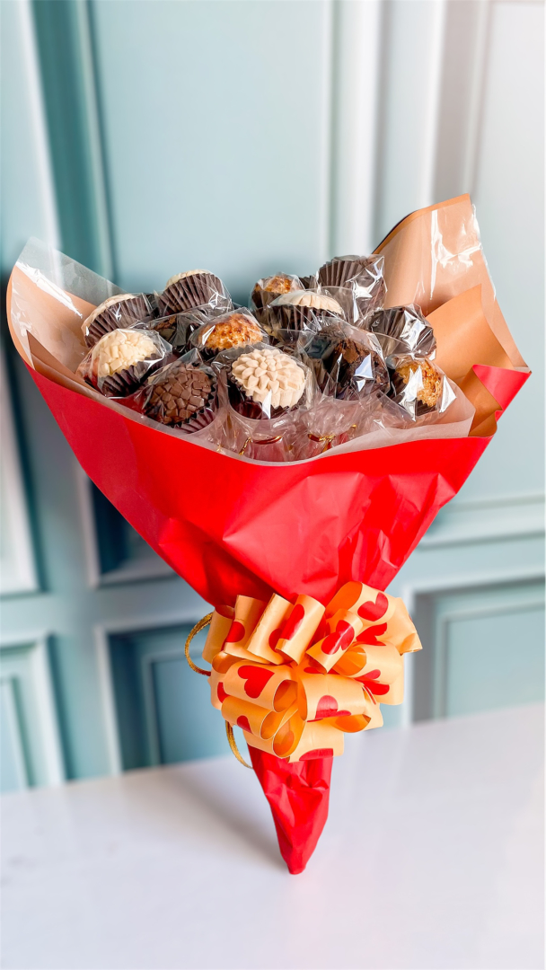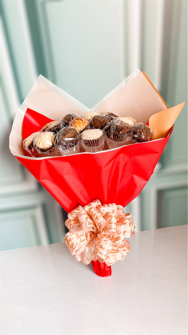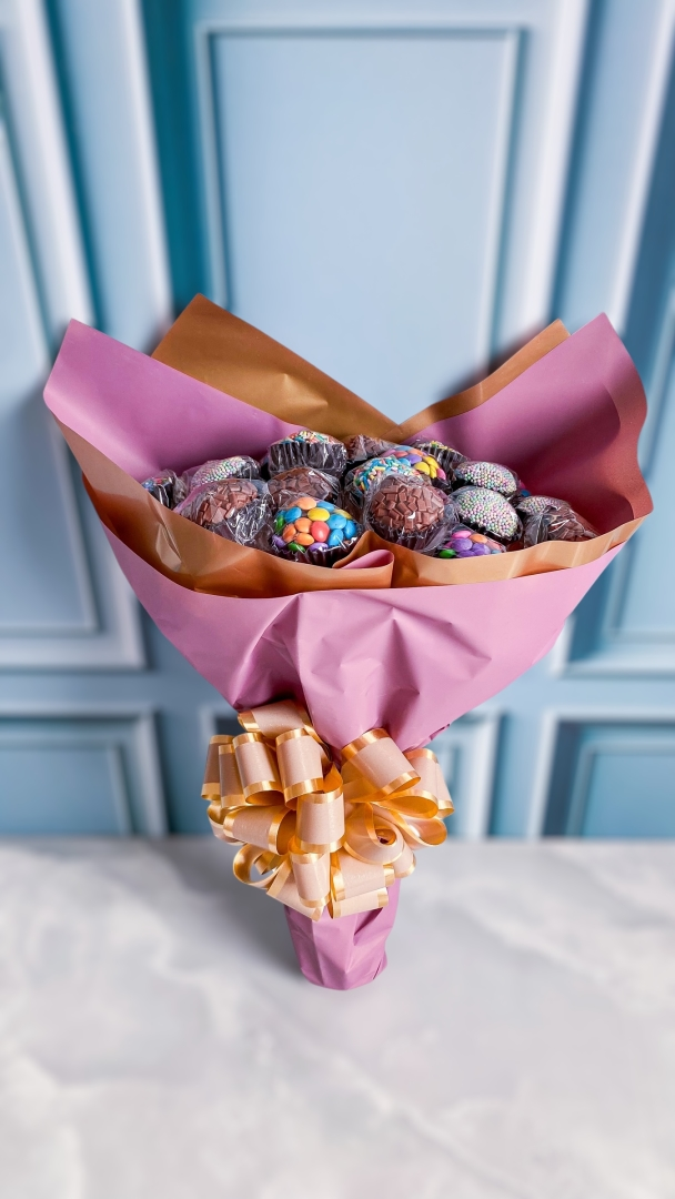 Incrível e impactante! O nosso Buquê de brigadeiros é composto por 20 unidades, entre eles, brownies e brigadeiros.